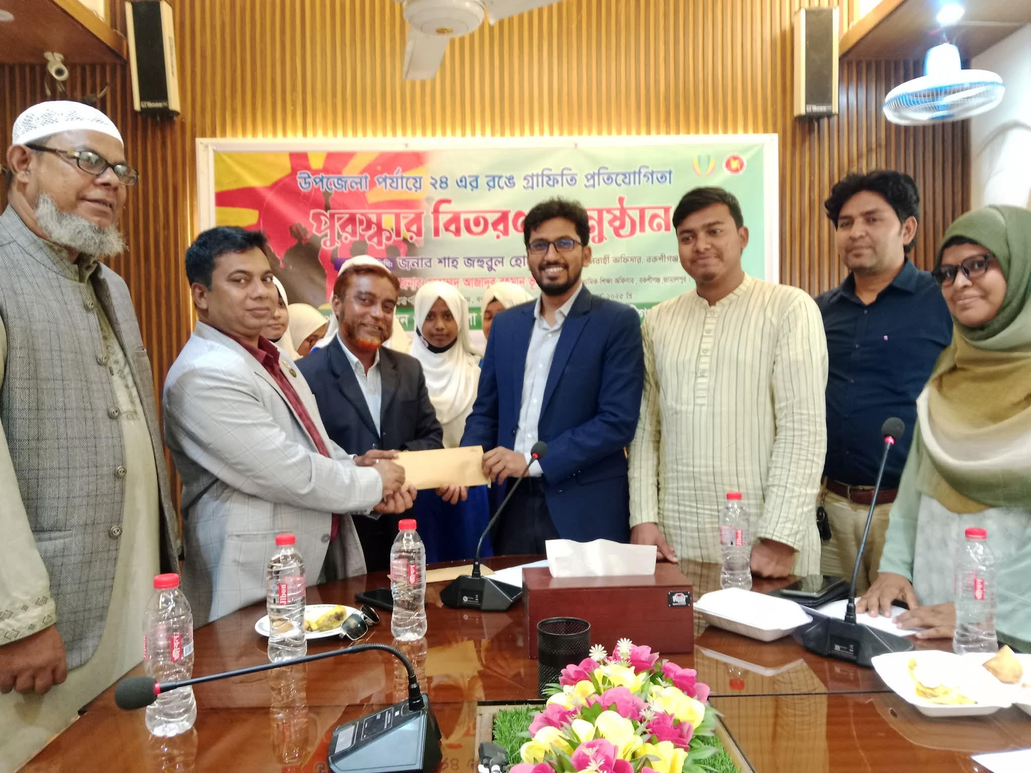 বকশীগঞ্জে জুলাই অভ্যুত্থান নিয়ে গ্রাফিতি প্রতিযোগিতায় বিজয়ীদের মাঝে পুরস্কার বিতরণ