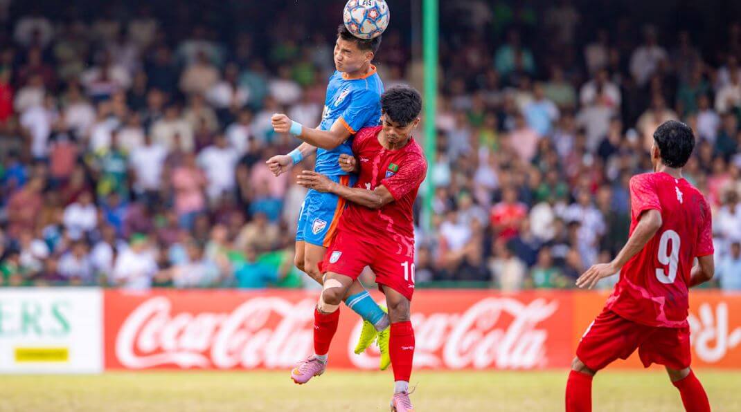 সাফ অনূর্ধ্ব-২০ চ্যাম্পিয়নশিপে প্রথম সেমিফাইনালে নেপালকে ১-০ গোলে হারিয়ে ফাইনালে উঠেছে বাংলাদেশ অনূর্ধ্ব-২০ দল। গত বুধবার দ্বিতীয় সেমিফাইনালে ভুটানকে ৫-০ গোলে বিধ্বস্ত করা ভারত ফাইনালে বাংলাদেশের প্রতিপক্ষ। আজ শুক্রবার মালদ্বীপের মালের ন্যাশনাল ফুটবল স্টেডিয়ামে বাংলাদেশ সময় রাত ৮টায় ফাইনালে মুখোমুখি হবে দুই দল। ফাইনালে ওঠার আগে দুই প্রতিপক্ষই ‘বি’ গ্রুপের ম্যাচে পাকিস্তানকে হারিয়েছিল। তবে পাকিস্তানের কাছে কোনো গোলই হজম করেনি দুই দল। পাকিস্তানের জালে বাংলাদেশ দিয়েছিল ২ গোল আর ভারত ৩ গোল। এখন পর্যন্ত টুর্নামেন্টে দুই দলই গোল হজম করেছে মাত্র একটি। সেটি গ্রুপ পর্বে নিজেদের ম্যাচে। সেই ম্যাচটি ১-১ গোলে ড্র হয়েছিল। তাই ফাইনালের লড়াইটাও হবে সমানে-সমান বলা চলে।