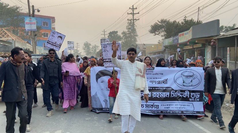 জামালপুর-৩ আসনের স্বতন্ত্র এমপি প্রার্থী কাপ পিরিচ প্রতীক এর জন্য মাদারগঞ্জে গণ মিছিল