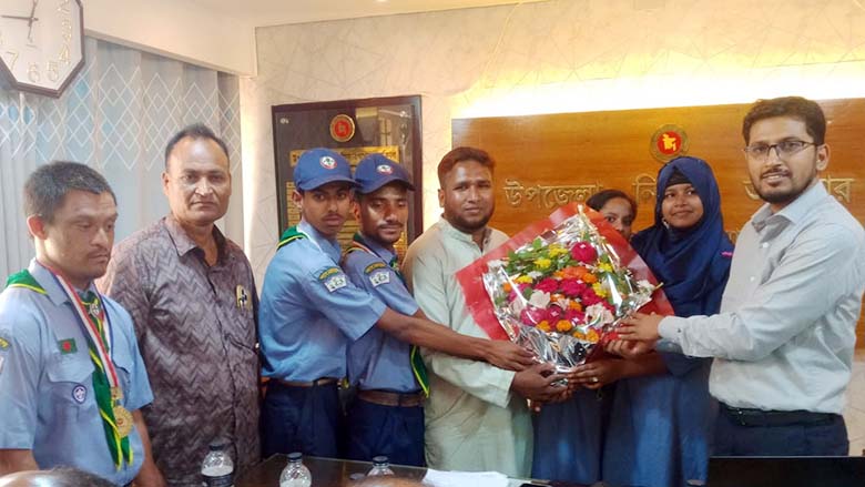 দেওয়ানগঞ্জে নবাগত ইউএনওকে ফুলেল শুভেচ্ছা ও অভিনন্দন জানালো প্রতিবন্ধী শিক্ষার্থী স্কাউট দল