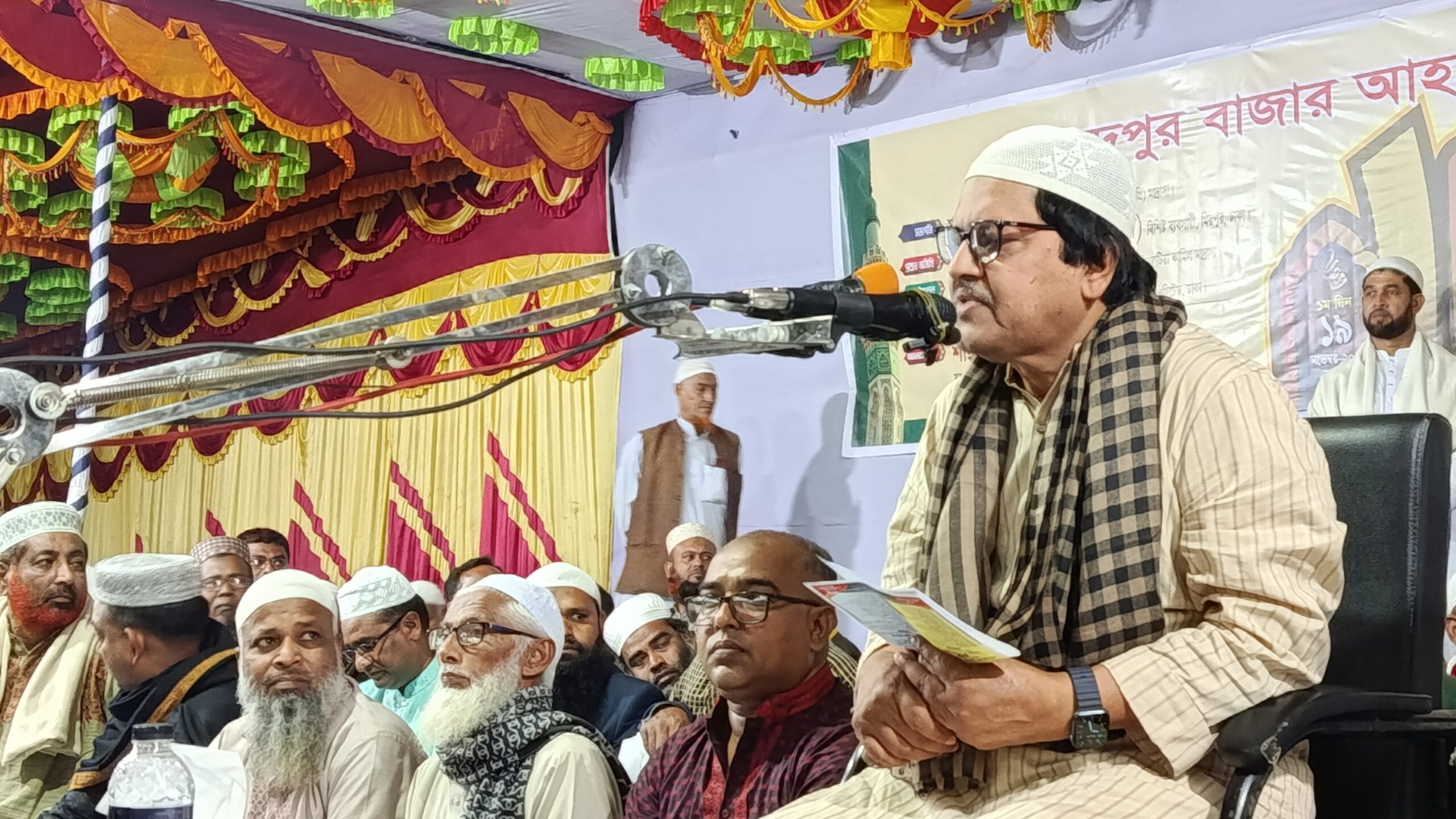 ইসলামী সম্মেলনে জাতীয় বিশ্ববিদ্যালয়ের কন্ট্রোলার মো. এনামুল করিমের সভাপতিত্বে প্রধান বক্তার বক্তব্য দেন, নিরবাস ইসলামিক রিসার্চ ফাউন্ডেশনের চেয়ারম্যান শায়খ আব্দুর রাজ্জাক বিন ইউসুফ। প্রধান অতিথির বক্তব্যে বাবুল আরও বলেন, গত, ৫ আগষ্ট যাদের রক্তের বিনিময়ে, যাদের শাহাদাতের বিনিময়ে এই বাংলাদেশের জমিনে এই পরিবেশ তৈরি হয়েছে তাদের আত্মার মাগফেরাত কামনা করি। যে ভাই অন্ধ হয়ে গেলেন, যে ভাইয়েরা আহত হয়ে গেছেন, তাদের সকলের জন্য দোয়া করছি। এই বাংলাদেশে আর কেউ যেন কখনো আমার ইসলামী মহাসম্মেলন করবার পথে, ইসলামী সম্মেলনের পথে, ইসলামী মাহফিলের পথে আর কেউ যেন কখনো বাধা হয়ে দাঁড়াতে না পারে। বক্তাদের বক্তব্য পেশ করার পথে কেউ যেন হুমকি হয়ে দাঁড়াতে না পারে।