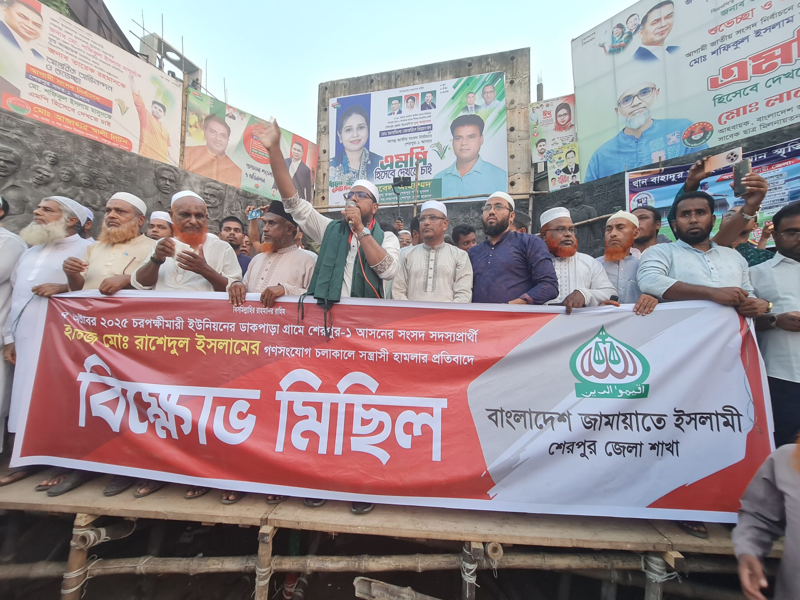 শেরপুরে বিএনপির সন্ত্রাসী হামলার প্রতিবাদে জামায়াতের বিক্ষোভ মিছিল ও সমাবেশ অনুষ্ঠিত